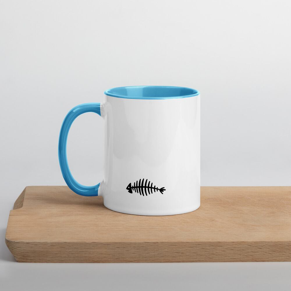 A sleek black cat design on the front, and on the back—a fish skeleton left behind as if the cat had a sneaky snack!