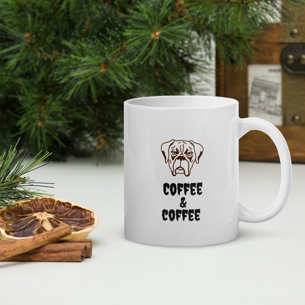 どこか渋い表情のワンコと「COFFEE & COFFEE」の文字が並ぶ、ユーモアたっぷりのデザイン。